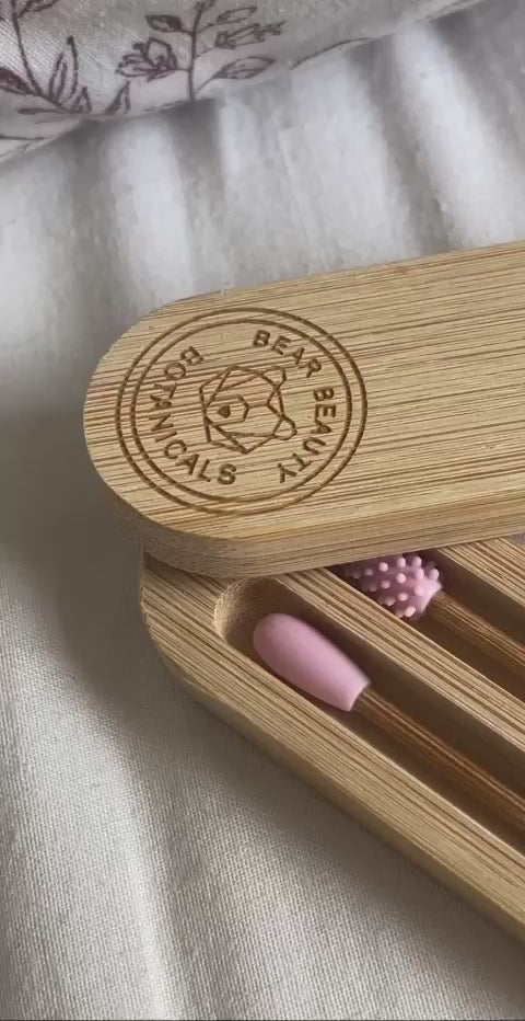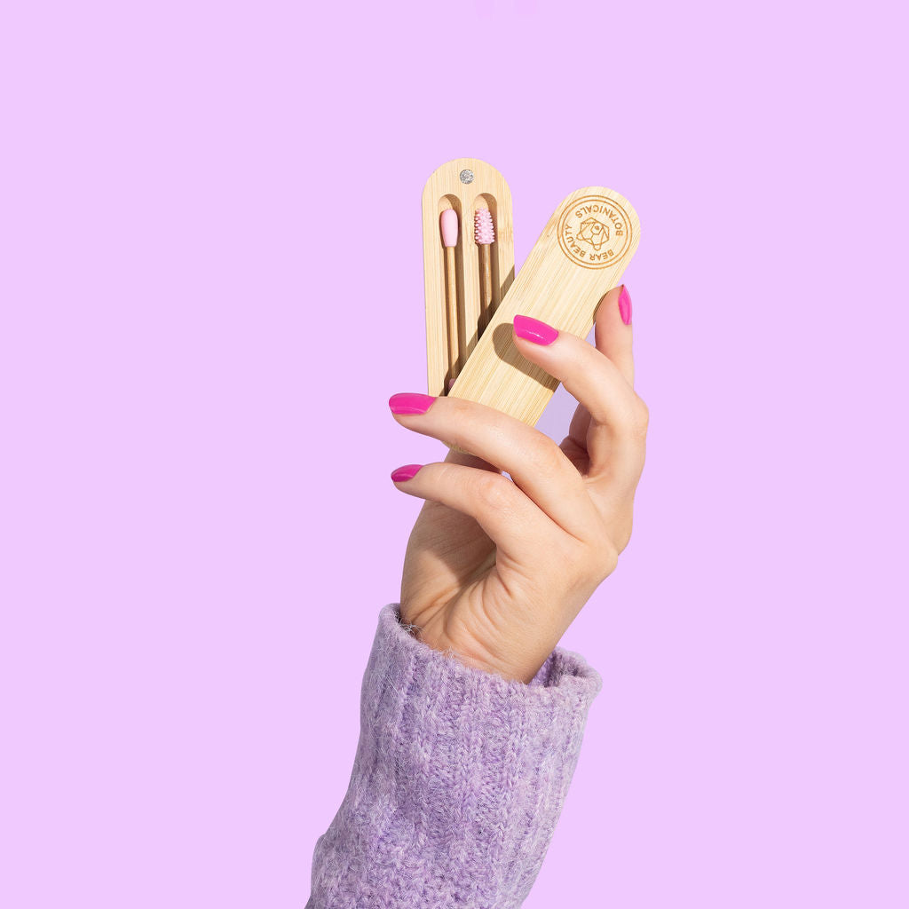Made with durable, easy-to-clean silicone tips & a sturdy bamboo case, these multitasking little wonders are perfect for makeup touch-ups, ear care, or whatever detail work your routine calls for.